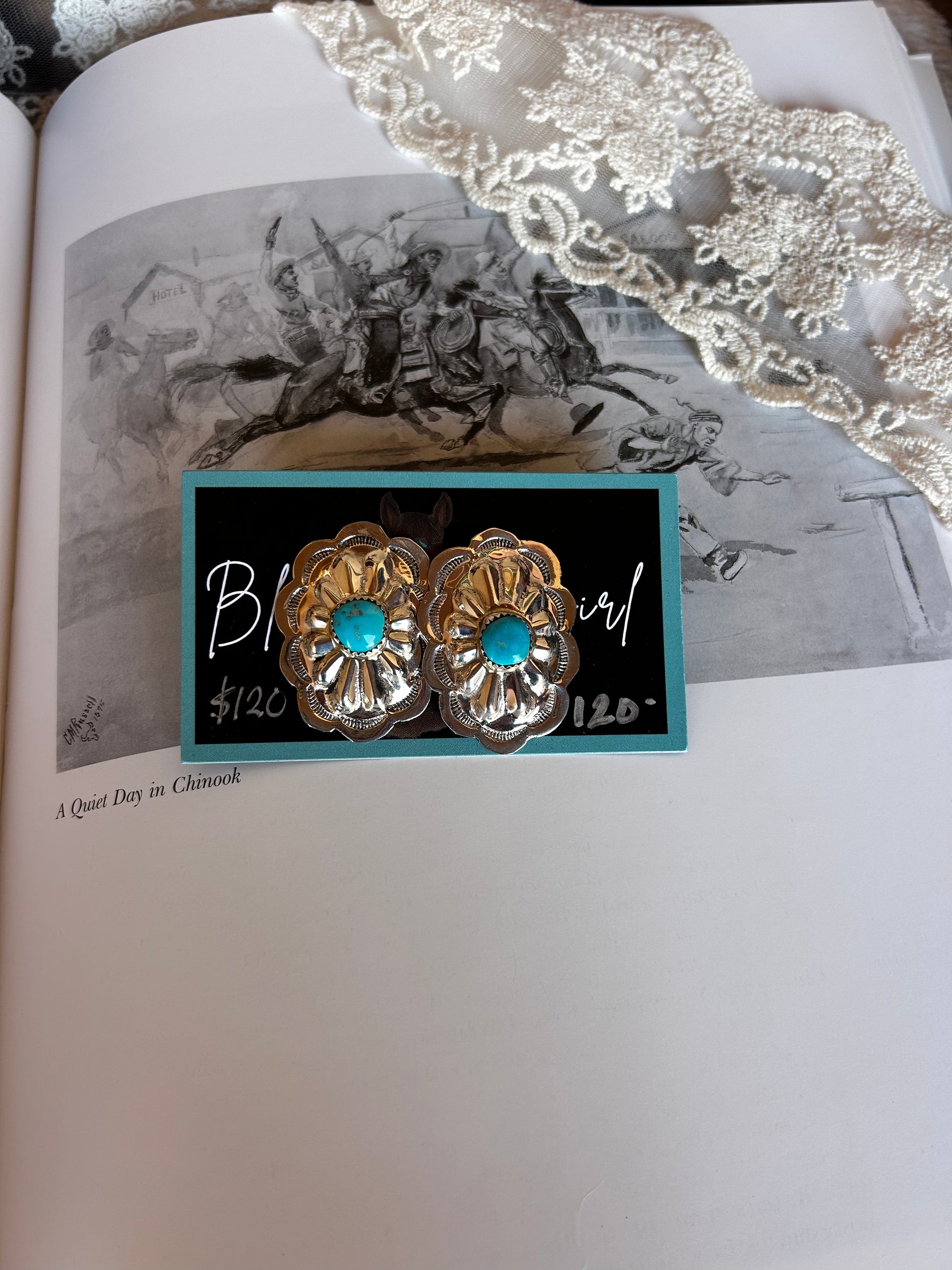these statement earrings feature large conch shells paired with Kingman turquoise stones, all set in sterling silver. Bold and unique!