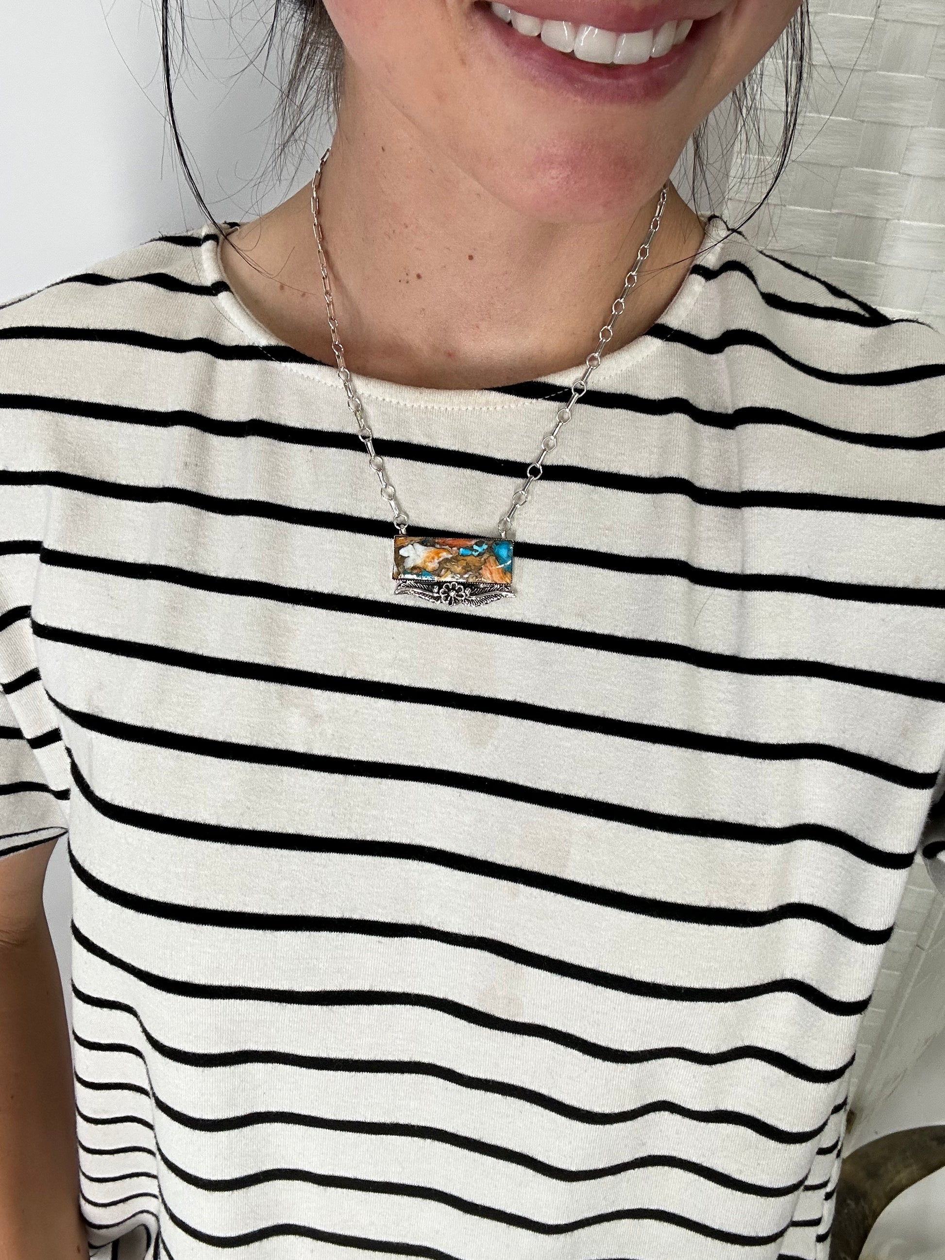 The perfect mix of colors in one necklace! This multicolored stone comes with a 24" adjustable paper clip chain.