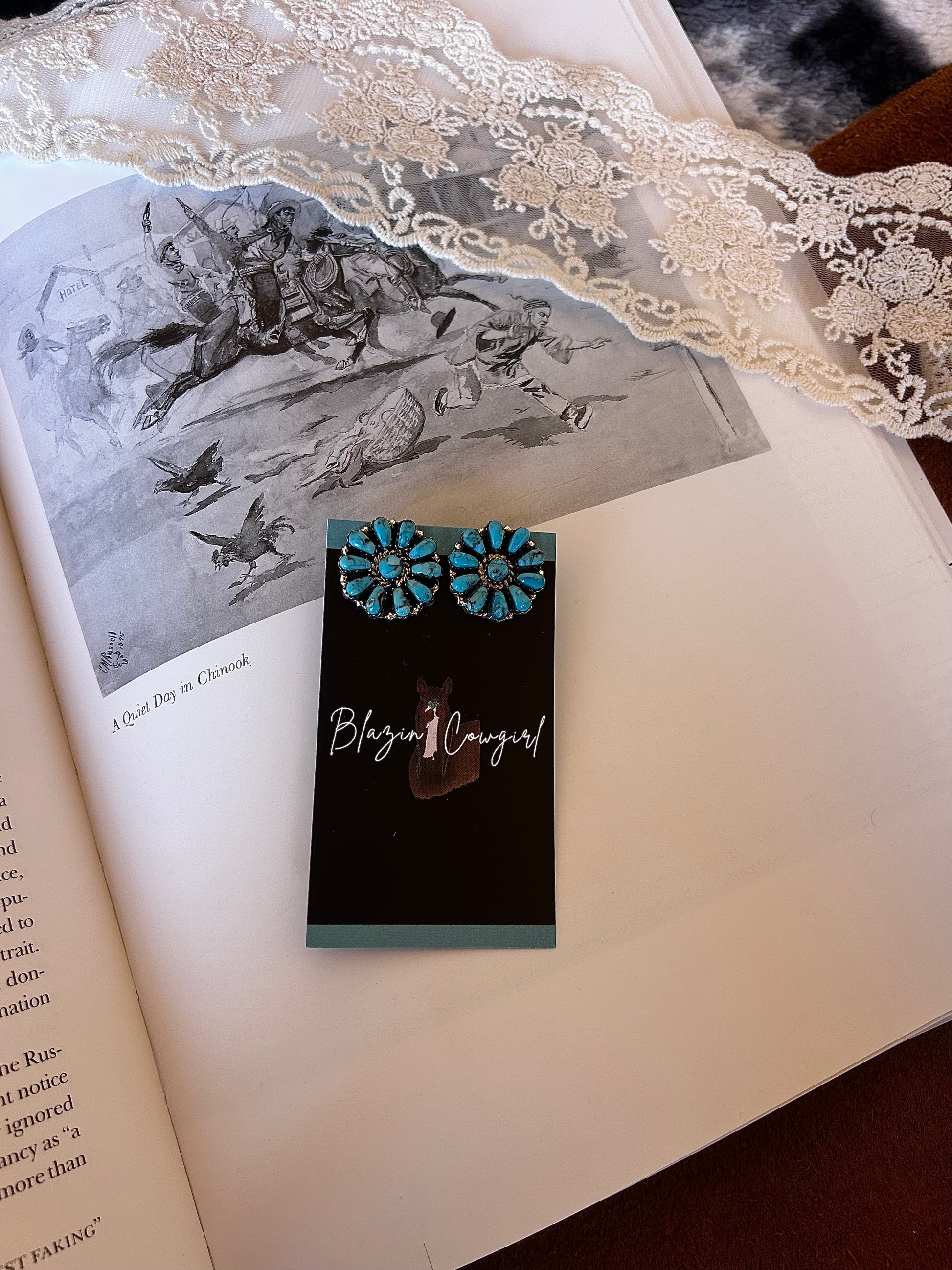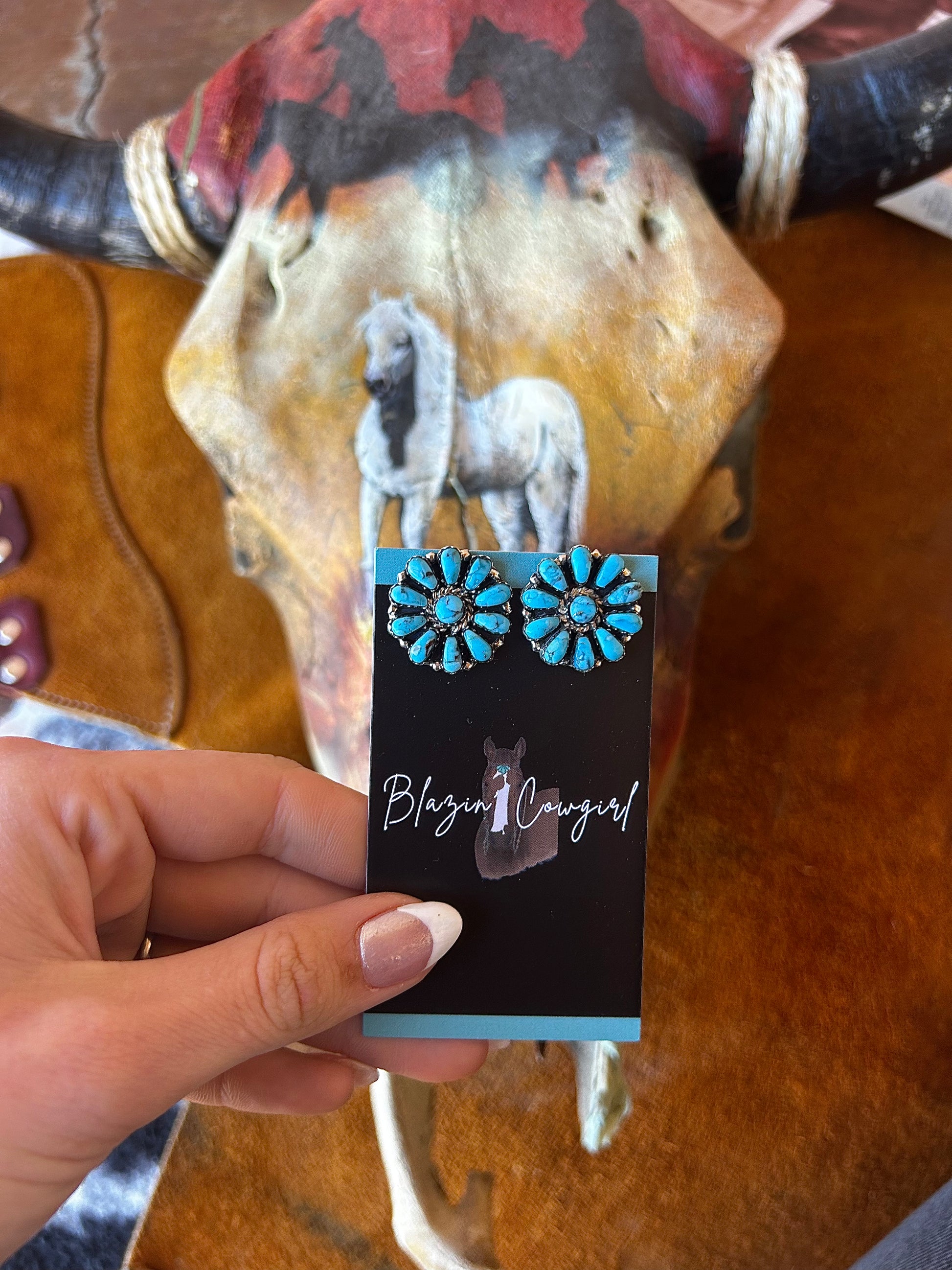 Adorn yourself with these exquisite flower earrings, meticulously crafted with Kingman stone and sterling silver.