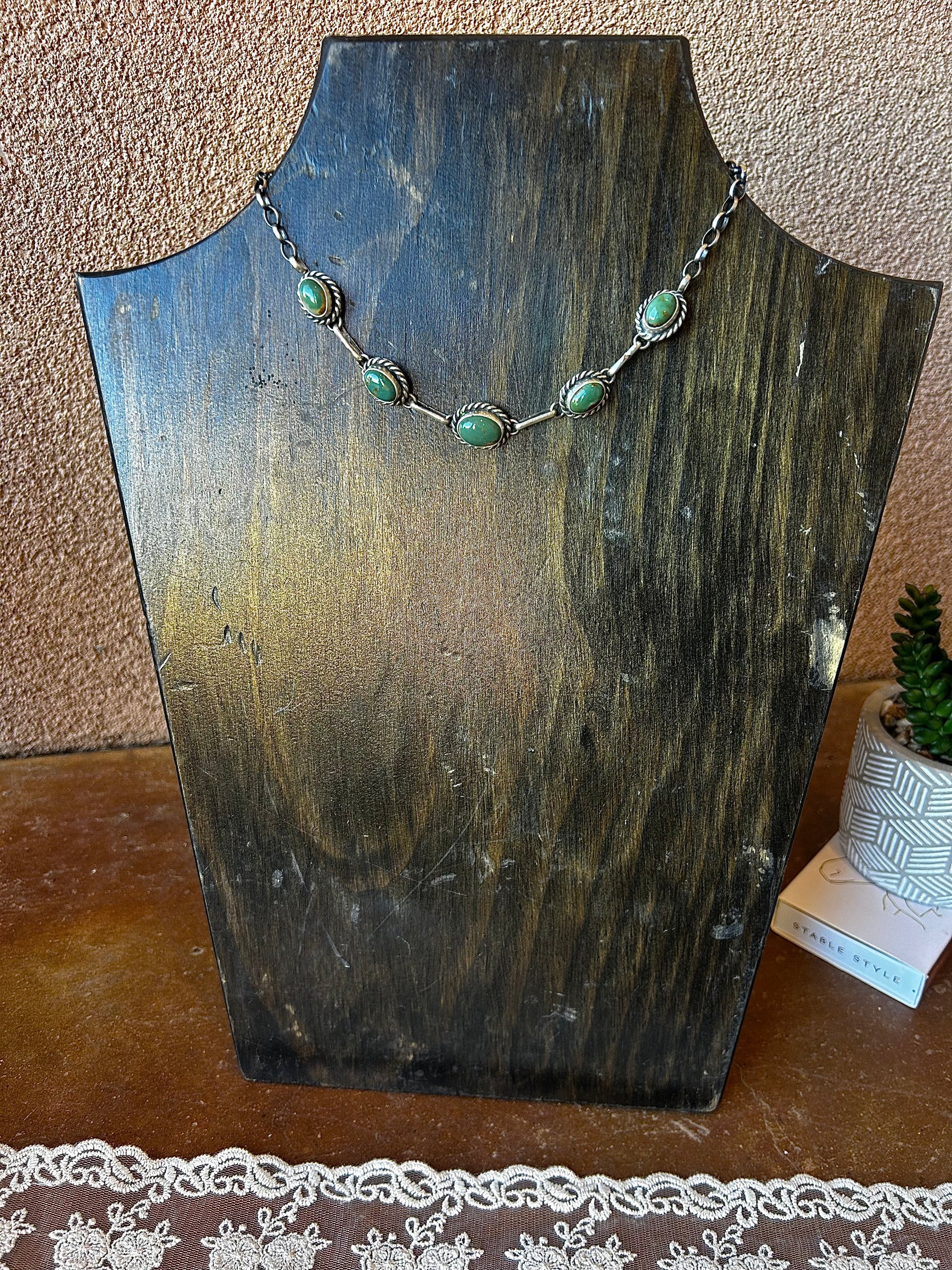 Discover the beauty of authentic Navajo artistry with this Kingman Turquoise necklace, handmade by the talented Augustine Largo. Featuring genuine Kingman turquoise and and 18" chain.