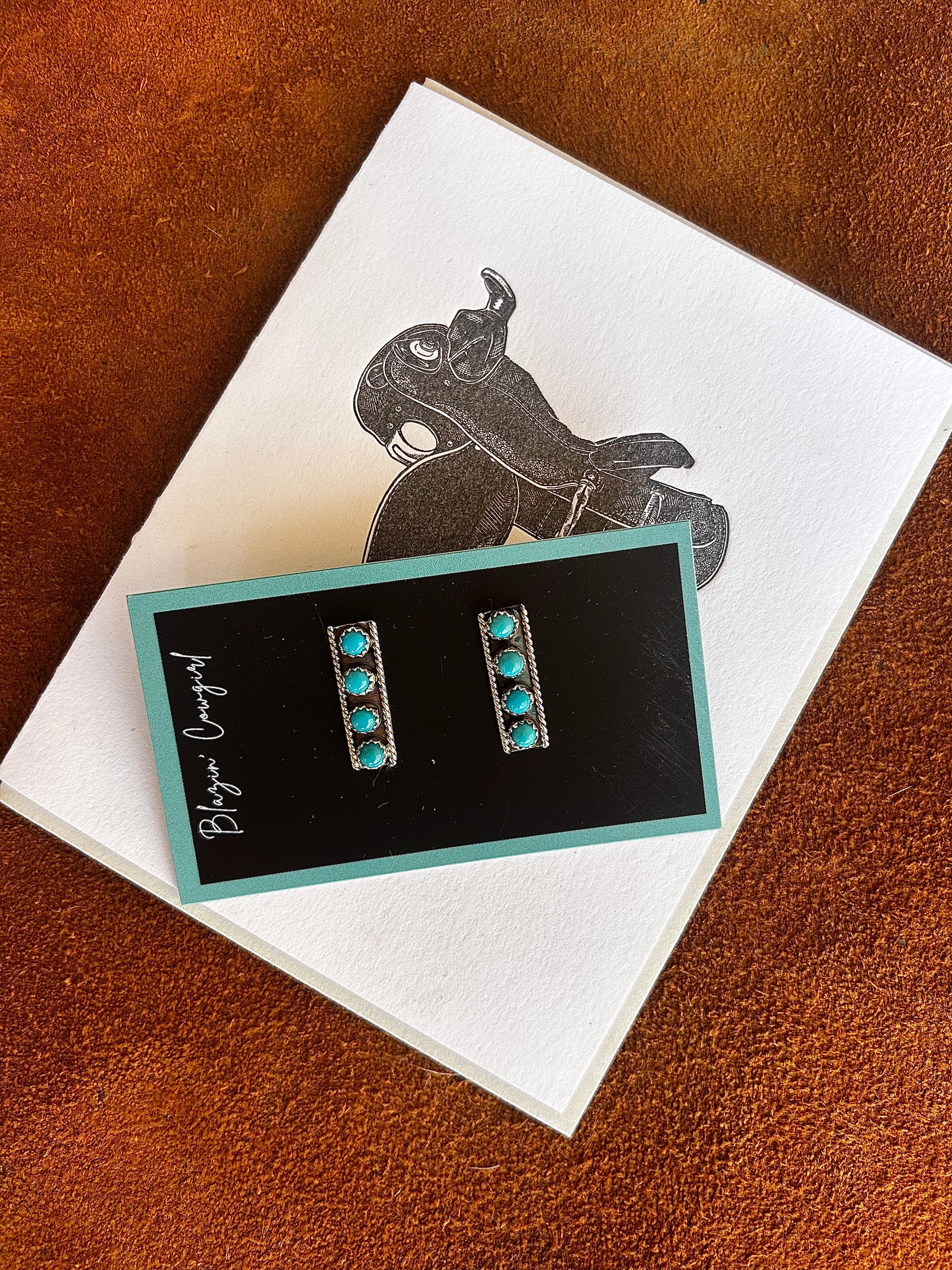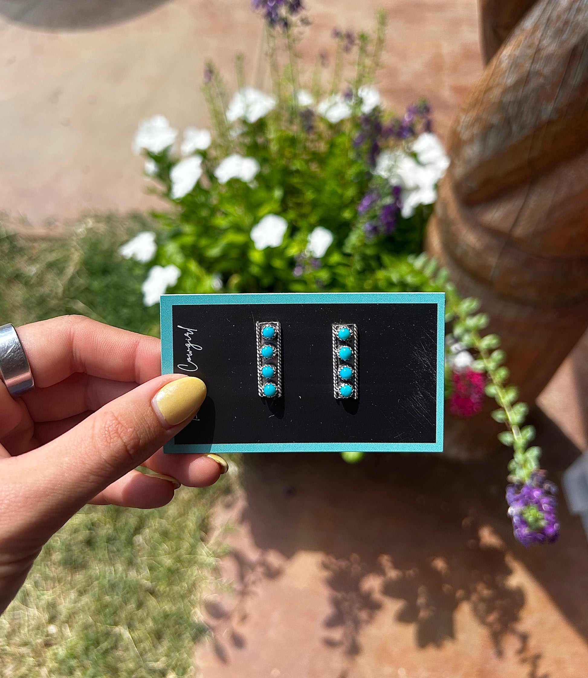 Add a pop of color to any outfit with these beautiful earrings made with Kingman Turquoise.