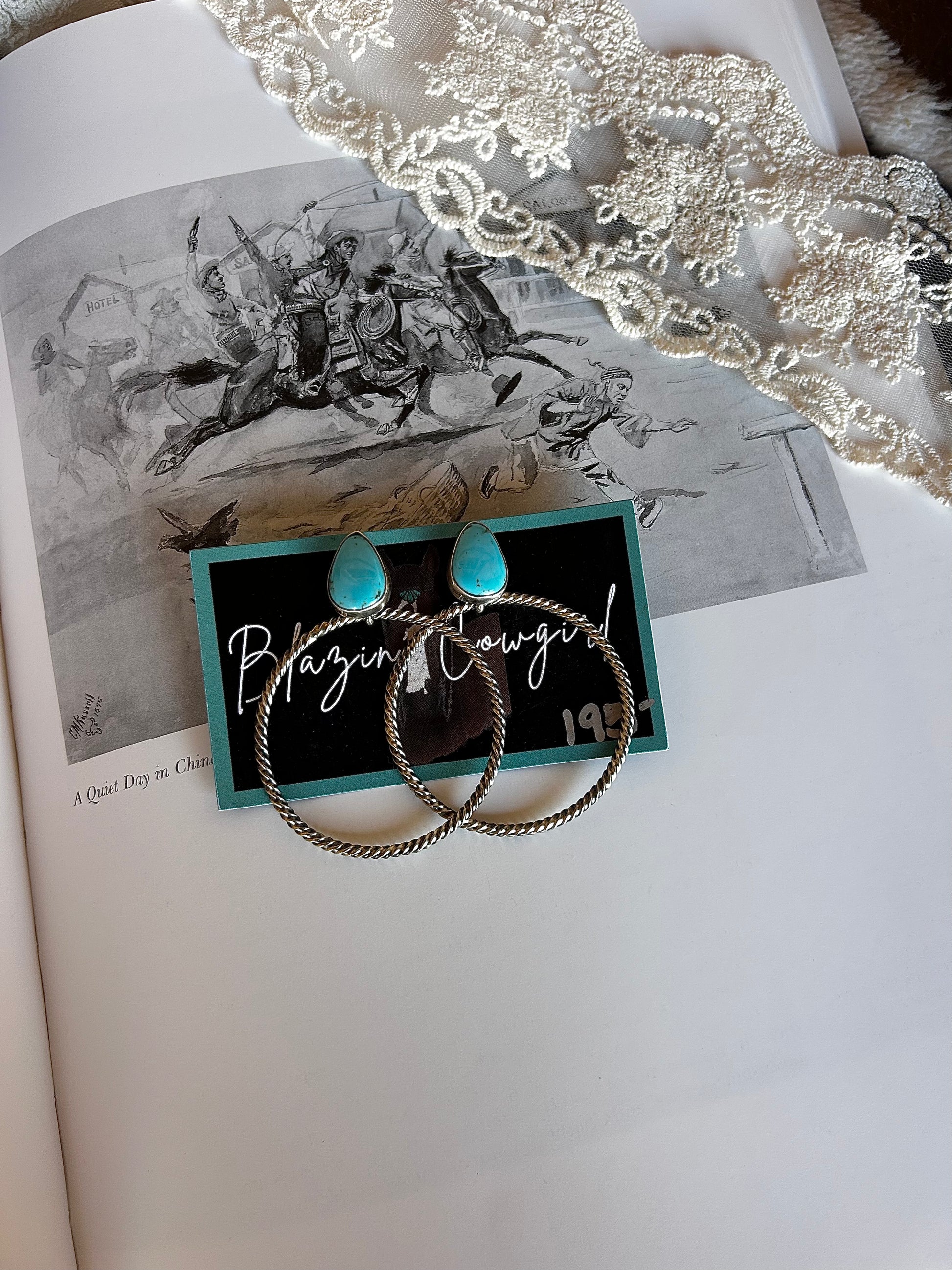 These sterling silver hoops feature vibrant Kingman turquoise accents, adding a pop of color and southern charm to a classic design.