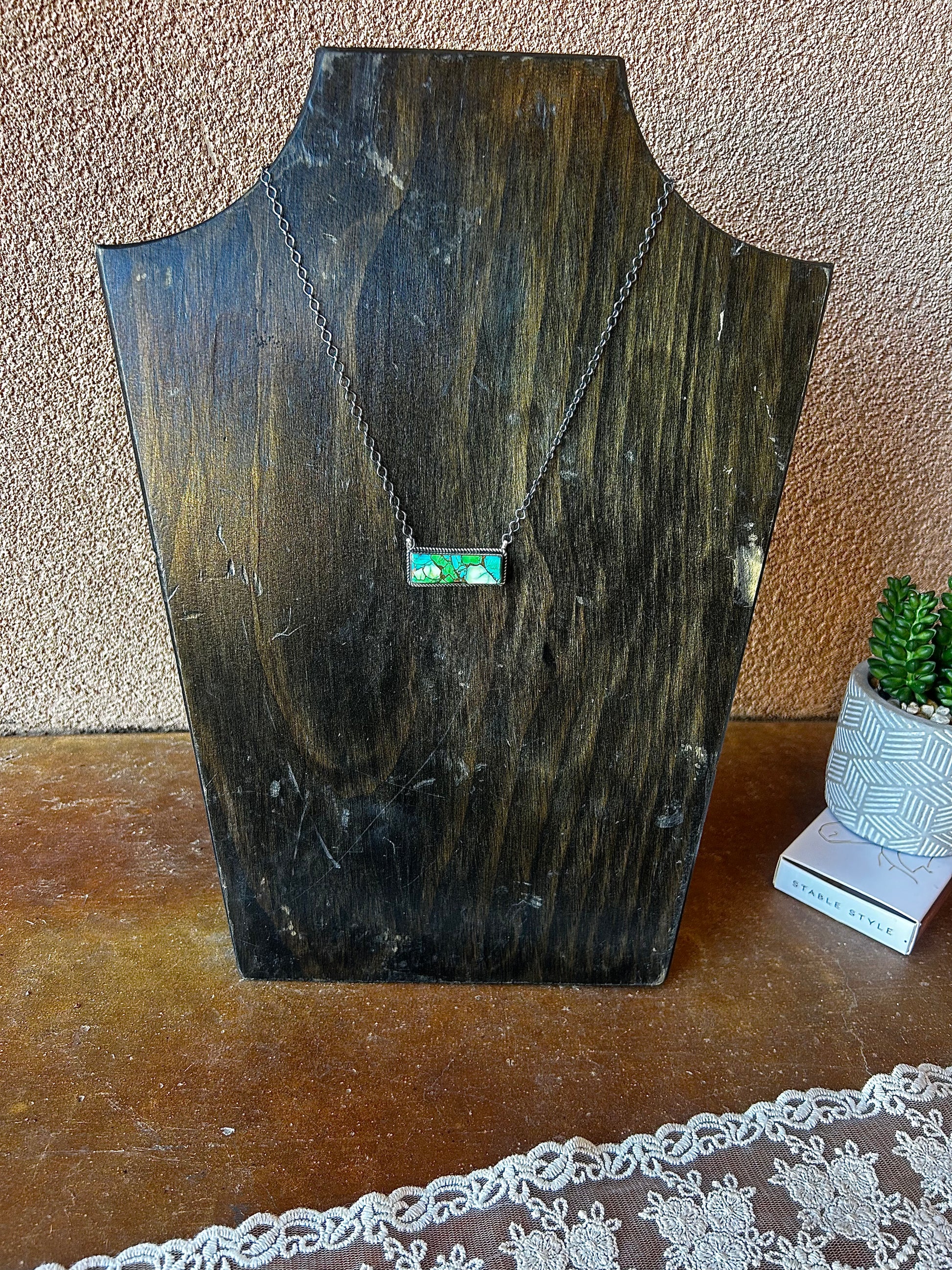 Experience the artistry of Tia Long with this beautiful Peacock stone necklace. The beautiful peacock stone pendant is paired with an 18" adjustable chain, making it a versatile and eye catching piece!