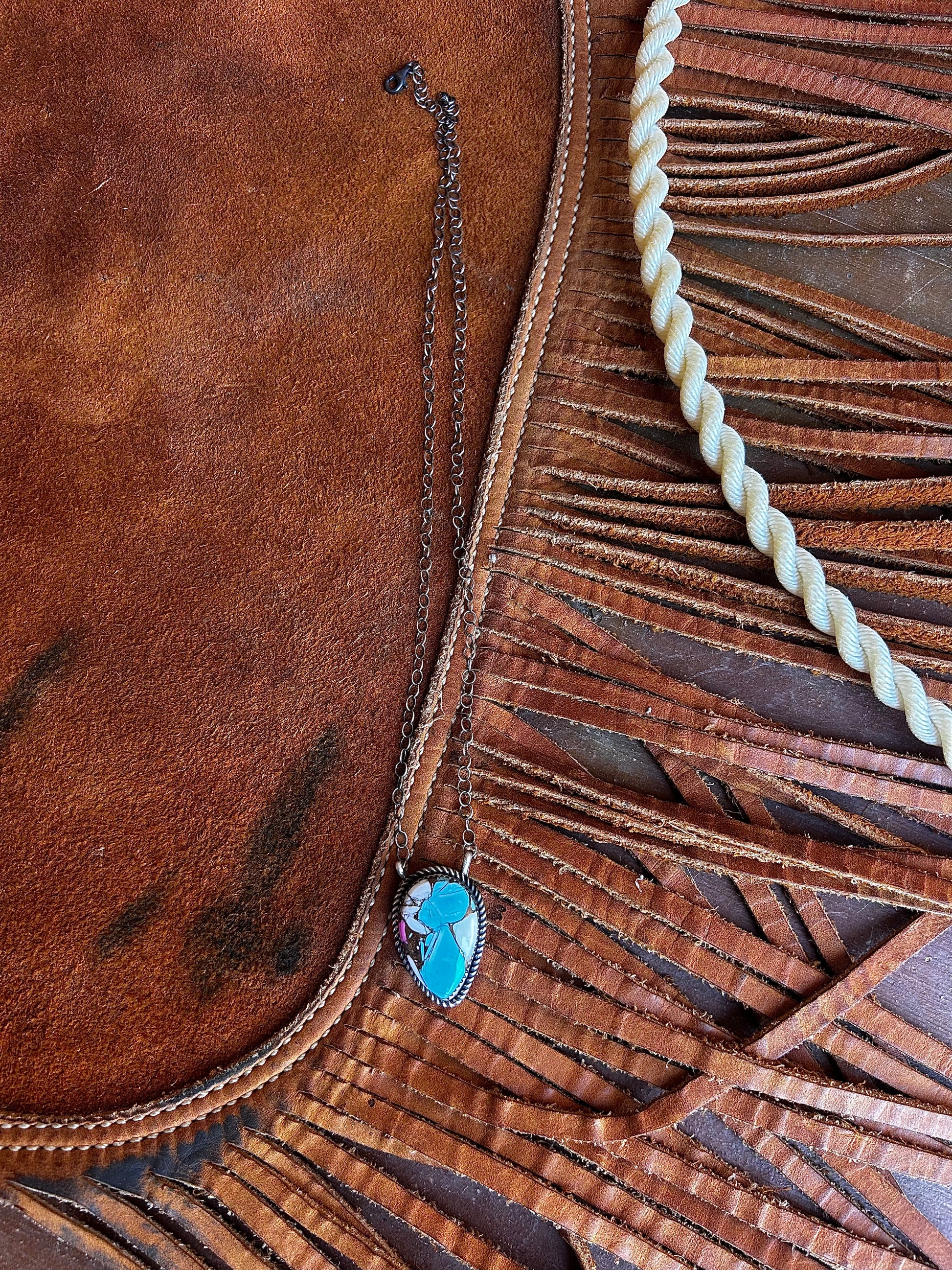 Indulge in the sweetness of this one-of-a-king necklace by Tia Long. The focal point is a mesmerizing cotton candy stone.