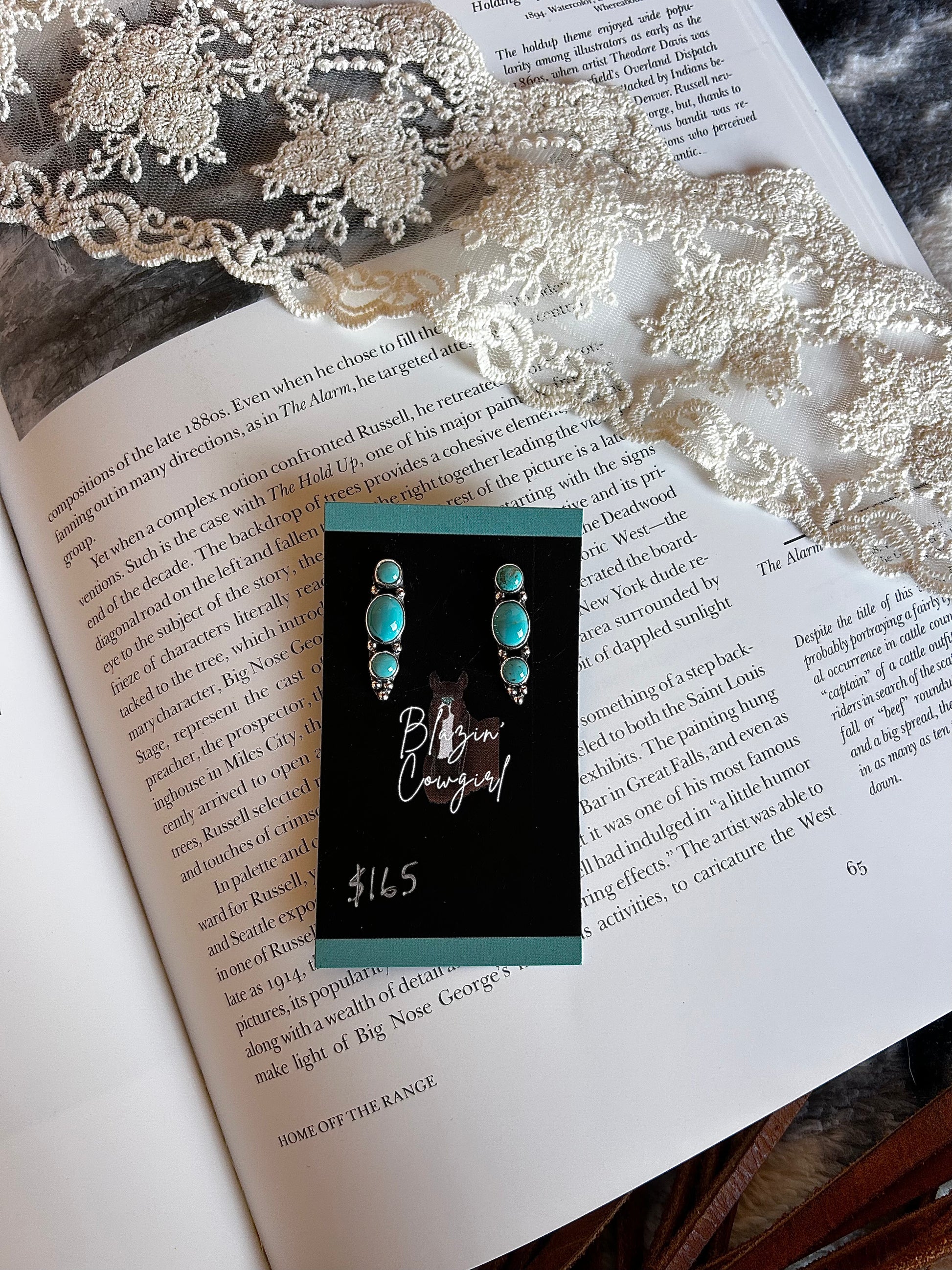 These sterling silver drop earrings feature three beautiful Kingman turquoise stones. A classic design with a pop of color!