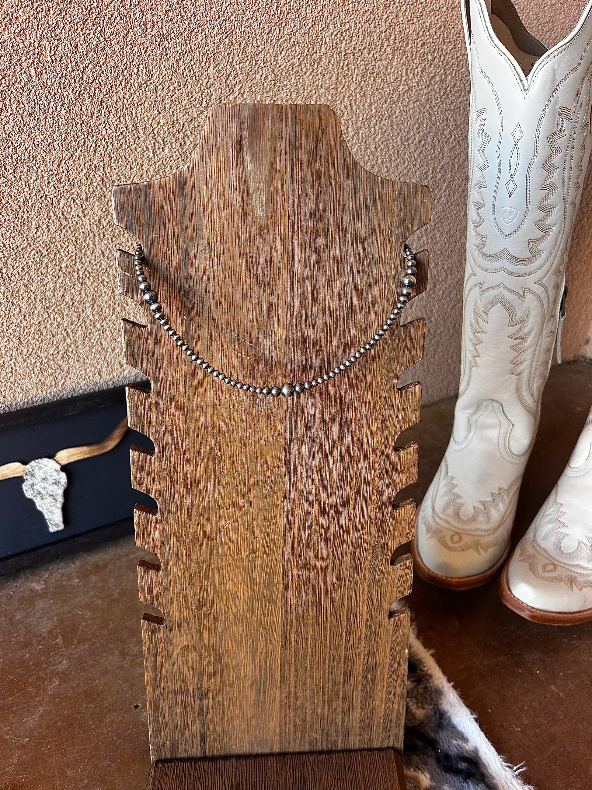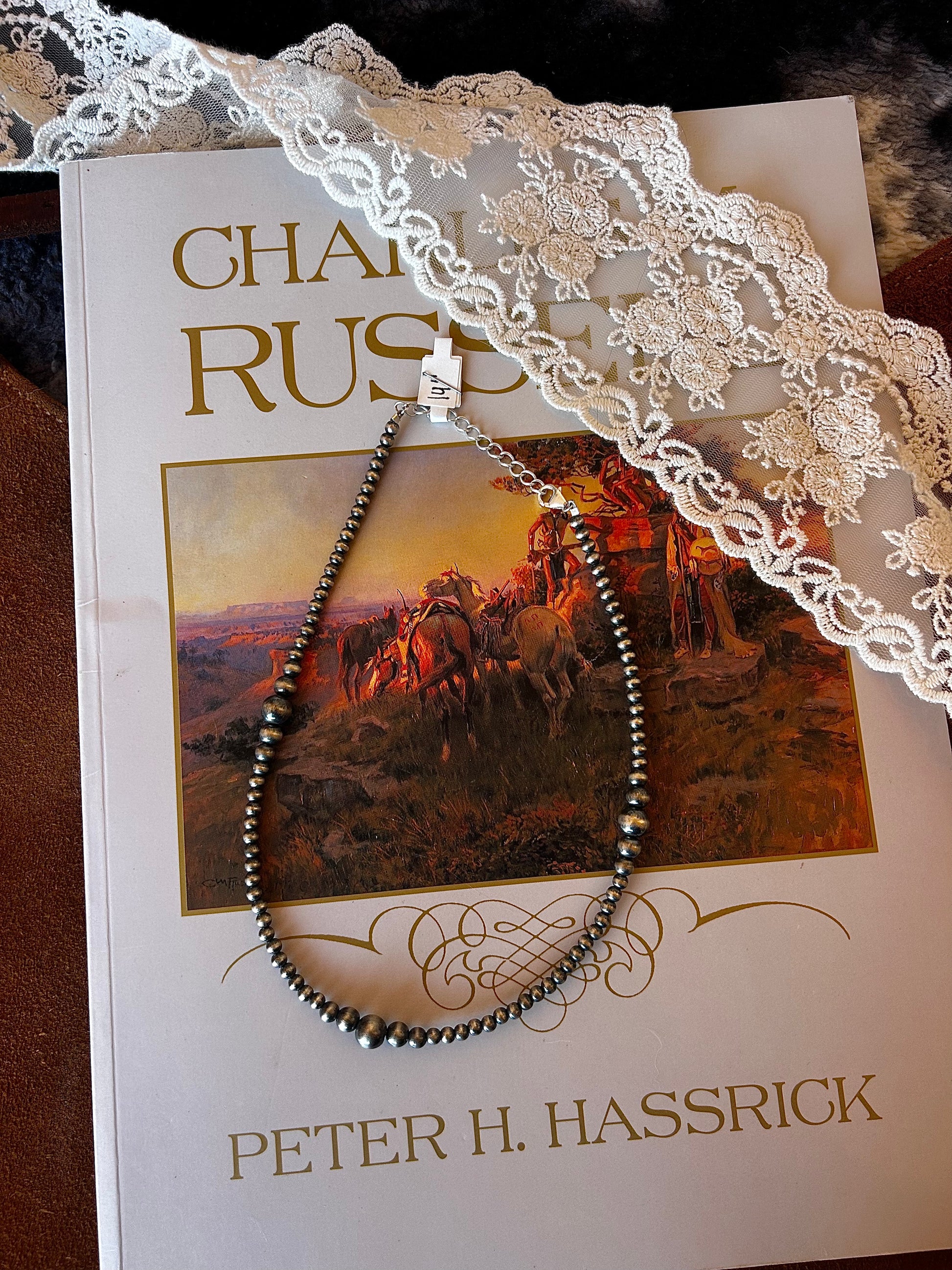 Experience the timeless allure of this hand-strung Navajo Pearl necklace. Featuring a delicate 3-6mm graduated design and a flattering 14" length.