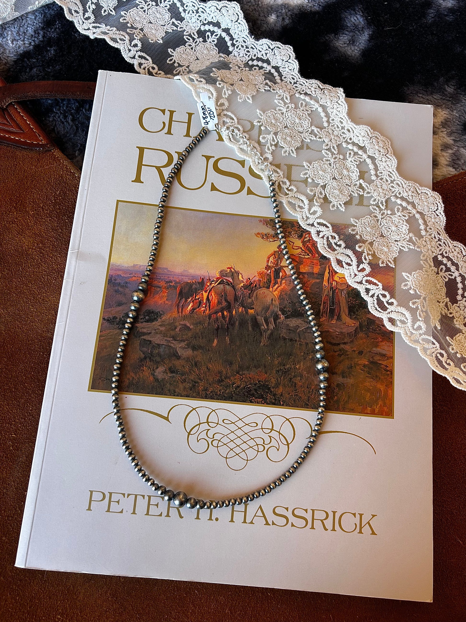 Experience the understated beauty of this hand-strung Navajo Pearl Necklace. Featuring a 4-8mm bead size and a classic 20" length.