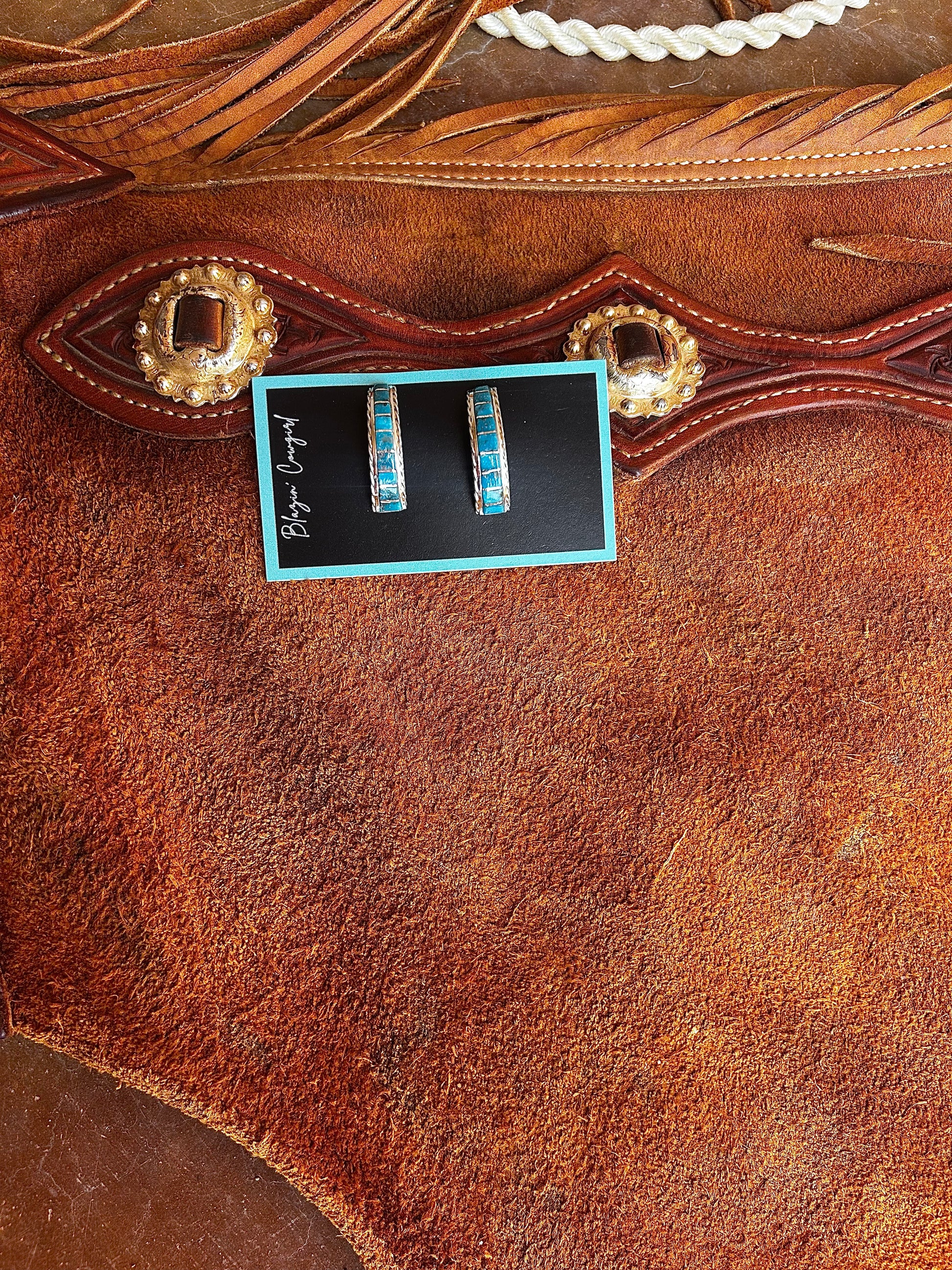 Stunning Zuni hoop earrings by Malcom Chavez featuring delicate turquoise inlay.